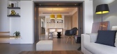 阳台用木地板做了地台设计,将其打造成另一个休闲区域,同时利用阳台的一侧做了储物柜,可以收纳日常生活用品,整洁又实用。用大块玻璃做移门既能有效区分空间,又能保...