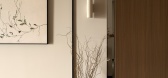 步入玄关,蝴蝶结样式的木色端景台与灰蓝色泼墨艺术画跳入眼帘,木色沉稳大气、灰蓝色优雅舒适,呼吸之间,尽显沉稳、温馨氛围。