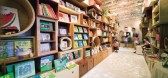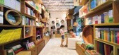 店铺分为两层,一层是活动中心,二层是画本专卖店。彩带环绕部分空间并巡回其中,彩虹状的色带营造出引起孩子好奇心的氛围。
