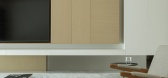 ,透过量体的虚实及内崁手法表现柜体收纳