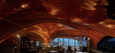 ...以彼此融合。,高约20米的废弃砖窑在竖向上已经形成了视觉上的制高点,新建筑便以水平方式介入,利用“拱”的形态与原本孤立的废弃砖窑建立起某种类型学的联系,并过设计元素的同构将新旧建筑完好拼贴成富有层次的整...