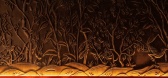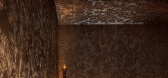 所选材料的目的,包括沙色砂浆、泥色地板和编织藤条天花板,是通过使用颜色和周...