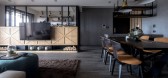这些深色与餐厅的桌子上的轻质墙壁、白色厨房、轻石仿瓷砖和天然石台面形成鲜明对比,休闲区的轻质皮革餐椅和扶手椅被覆盖在轻质织物中。房地产的容积和创造舒适,同时代表家庭环境。