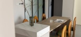材料选择:GRG、地坪漆、白色哑光漆、拉丝不锈钢、玻璃砖、帆布等