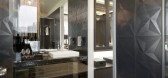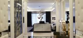 装饰材料:银狐石、白色冷烤漆、特殊壁纸、南非黑石材等.