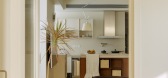 ...整体淡奶茶色调,并于其中内嵌原木换鞋凳与展示壁龛,通过材质与功能的清晰划分,形成视觉连贯且富有层次的结构表达,在满足实用需求的同时,营造出明朗而温润的归家序曲。