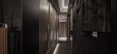 ...以深邃的色调为底,住宅犹如夜幕下的安详逸境,谧静而充满力量。墙面上如峭壁般层叠的石材,与温和的木头纹理相互对应,穿梭入廊,仿如走进古老树林,聆听生命的暗语,字字句句形构出时间的故事。巧妙隐...