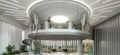 下一层专门用于研发,中心高台上设有实验室。工作站与实验室相连,体现了团队合作与创新的紧密联系。