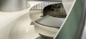 ...适应各种功能要求,局部楼板像小山丘一样凸起,计算机实验室和会议室被放置在凸起楼板的下方,而报告厅的观众席则随着弯曲下降的楼板而渐渐降低;一部分凸起楼板从建筑外表皮穿出,与室外LED座椅结合,创造了一个有趣...