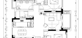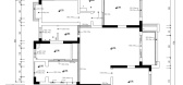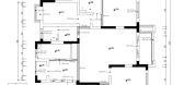 以基地原始梁位与居者生活习性之分析,重置墙体分界与相应面积的比例。公领域重塑后空间尺度的最大化与方正性、主背墙的序列木皮柜,皆使空...