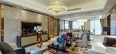 ...的茶盏、清新的沙发烘托的美好氛围,更是清丽的湖蓝,雅致的赤紫、高贵的金色所营造的空间意蕴。