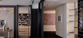 ...椅子,与餐桌的圆形形状相得益彰。这种圆形的形状也在雕塑般的灯光下发挥了作用。铜环在桌子上投下了一个光环,这种气氛在休息室的多边形灯光中得到了模仿。休息室通过建筑风格的板条胡桃木屏风与用餐区隔开,继续进...