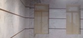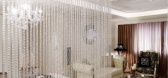 雪白銀狐、白橡木地板、噴漆、仿古銀線板噴漆、銅釘企口裝飾線、水晶珠簾