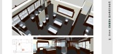 ,我们使用了不同类型的大理石、石材图案和复古青铜饰边。 我们还在墙上展示了不同的面料和壁纸。