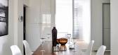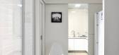 整个空间的视觉,穿过隐隐盖住书房的面纱-夹纱玻璃门,可以窥见书房大面积,秩序中带有活拨的展示书墙。