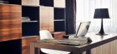 整个空间的视觉,穿过隐隐盖住书房的面纱-夹纱玻璃门,可以窥见书房大面积,秩序中带有活拨的...