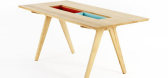 餐台的实心桌面有两个储存小盒,你可以在其中隐藏或呈现物品。五颜六色的幼崽可以用板子覆盖,板的一边是实木,另一边是板条,所以它们可以用作小淘气。