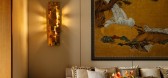 现代艺术家施新权的签名限量款艺术品【刺桐梦】,亦是空间的个性注脚,光韵与雕塑的人面形...