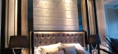 墙面由香槟金网格线整齐划分,于细节处体现追求精致的艺术品味。
