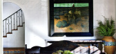 ...椅,充满着简练的现代美感。整墙的书柜,中间挂上一幅马首装饰画,给书房融入了不少自由惬意。