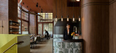 ...置的木制长椅座位、黄色皮革和红色管道隔间、软木墙和鹅卵石地板组成。它经久耐用,适合用途,在宣布自己的身份时巧妙地引用了酒店的主题。在SOUL Deli之外,一个史诗般的三层高接待区标志着酒店客人的抵达点。有凹槽的...