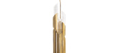 ...低矮的大型软装设计,如同光彩夺目的艺术装置。丰富的金色配饰和配饰为深色木质,黑色和灰色填充大胆的软装设计方案增添了光彩。