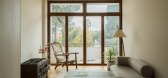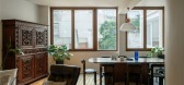 大面玻璃窗的改造,将窗外的绿意大片大片引进眼帘,与客厅的绿色系宝格...