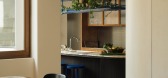 这个区域的地板由微水泥制成,带有葡萄牙制造商TopCer的纯色瓷砖,给人一种空间内持久的遗产感。座椅和桌子的颜色与瓷砖色调相协调,为繁忙的大厅营造出宁静的背景。
