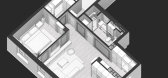 在实现F76公寓项目时,我们特别关注体积和空间的解决方案。 尽管空间的几何形状复杂,我们还是成功地将公寓划分为一个开放的公共区域,设有厨房、客厅和书房; 我们还创建...