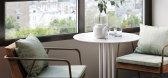 ...SILVER TRAVERTINE STONE, TADELAKT PLASTER, WITH BRASS AND SOFT TEXTILES AS ACCENTS. EXTERIOR MATERIALS (SHOU SUGI BAN WOOD AND PLASTER) ARE USED IN THE INTERIOR TO CREATE A SEAMLESS CONNECTION BETWEEN THE EXTERIOR AND INTERIOR. A LIVING SPACE WHERE CONTRAST MEETS HARMONY — PLUSH WHI...