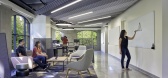 ...nia.,The open road,A light-filled, expansive workspace was designed to house many of the company’s functions under one roof: customer and partner relations, open offices, amenities, garage space and technical labs. To create a cohesive story throughout the 111,000 SF space and remind employees...