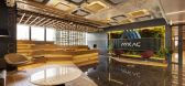 顶部灰色体块实则为办公室提供了额外的储藏空间,门厅与接待空间被无形划分,接待台后面灰色混凝土柱子得以保留,强调了空间的结构的同时丰富了空间的品味。