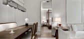 天然雀眼木质餐桌与经典米白皮革餐椅相搭配,在色泽与材质的相比下,自然而带有浓郁时尚品味。
