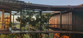 Outside the building, the user is invited to access through concrete walkers embraced by lattices and vegetation that isolates the employees from the industrial environment. The parking garage and walkers integrates filtering materials and systems such as local stone, gravel and permeable conc...