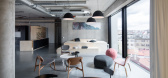 ...ical floor plan, supporting load-bearing columns in a diagonal slope and a glass facade with a 360 ° view. Spectacular view combined with plenty of natural daylight and an organic floor plan make this place unique. The task here was to create an office background for Manifesto and reSITE company. D...