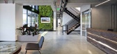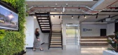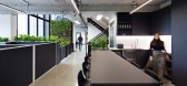 ...工镶板基准上方倾斜的拱腹增添了戏剧性,将光线反射到办公室深处。 这个新办公室设计最令人印象深刻的特点是空间的明亮和安静。 黑色宽松家具完善了为工作区和公共区域选择的精致调色板。