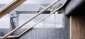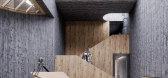 ...伸到餐厅。 第二间卧室可以是客房、托儿所、图书馆、办公室。顶灯营造出车间的形象。 外观非常封闭,几乎没有窗户开口,与其复杂的内部结构形成鲜明对比。 阳台的出口补充了房子的空间感。