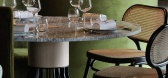 ,材料:Lamina 是依靠大理石板交汇的餐桌。灵感来自建筑师 ClaudeParent 或 John Lautner 的作品理念,他们将建筑从经典的“立方”空间中解放出来,并在 60 年代的建筑中通过斜线...