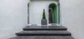 The materials used - raised concrete floor and pebbles, wood, sheet metal, granite and ...