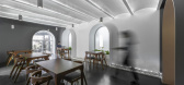 ...r lo tanto diversas experiencias para el visitante desde sillas bajas tipo lounge y mesas compartidas hasta taburetes y rincones semiprivados para parejas. Una paleta de color gris y blanco ha sido escogida junto a acabados metalizados para las mesas y telas con el fin de generar reflejos que recrea...