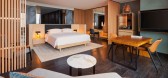 客房內部由英國著名的設計師團隊 Conran and Partners 負責打造,整體感覺時尚而精緻,並在許多地方融入印尼傳統的風格與材料。