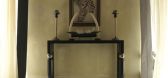 Amoia devised a series of consoles and coffee tables made from crushed stones such as malachite from the Congo, lapis lazuli from India and red jasper from across Africa