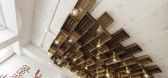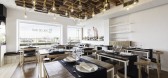 餐厅也以中性色调装饰,主要强调有趣的形状。由波浪形黄铜板制成的引人注目的哇效果天花板将您带入餐厅。