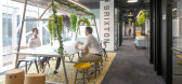 ...ted through the use of many plants, and a roof garden with WiFi access and different areas to boost working outdoors.The plan is open, light and encourages interaction. The custom-made workplaces are height adjustable and all situated on the same floor to stimulate interaction. Set up along the doub...