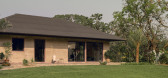 设计师描述 | Designer description: Three rammed earth walls made of different colored earths define, organize and structure this house. With different heights they define the occupation of the lot in all directions from a small triangular central courtyard resulting from t...