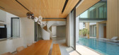 ...l y la ventilación dentro de los ambientes y conecta los espacios con los elementos naturales. El patio central está abierto al norte y es una interpretación contemporánea del tradicional patio cerrado de las residencias indias.,La planta baja alberga las áreas de estar, comedor y cocina, jun...