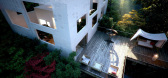 ...ual connection among the functions, open communication, a transparent work environment, and sufficient daylighting is emphasized by the extensive use of glass in the facade and skylights at the lower levels.