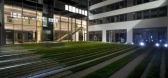 ...de todo o edifício também está coberta de verde, e está ligada por uma escada em balanço, assim como a margem do rio, fazendo com que todo o edifício seja uma grande ponte verde. O interior subdivide-se abrigando serviços públicos. Nesse ponto, a escala da cidade, a escala do edifício e a e...