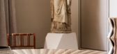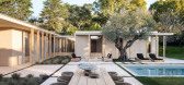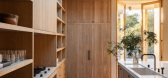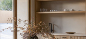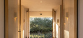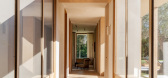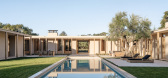 The interiors are furnished by Corinne Mathern Studio and add warmth and texture through natural materials and simple forms. Stone basins on wooden trestles, hand-carved timber furniture and organic materials such as linen and ra...