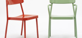 由塞缪尔·威尔金森为意大利品牌EMU设计的格蕾丝系列包括一张堆叠椅和扶手椅、一张凳子和一张折叠咖啡桌。